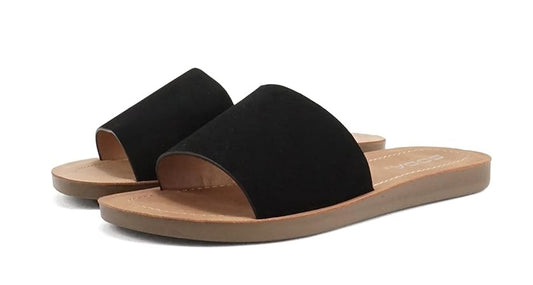 Soda Shoes Women Flip Flops Basic Plain Slippers Slip On Sandals Slides Casual Peep Toe Beach Efron-S Black Nub 7