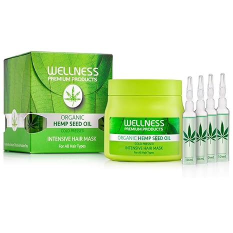 WELLNESS PREMIUM PRODUCTS Hemp Seed Oil Hair Mask Organic, 500ml/16.9oz – Hemp Seed Organic – Hemp Oil Hair Mask – Cold Pressed Hemp Oil – Hemp Seed Oil