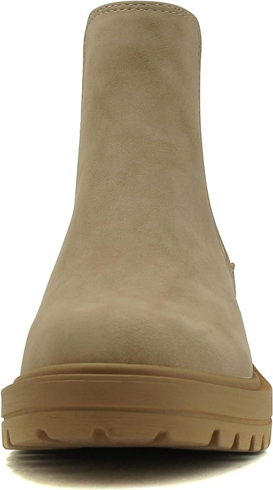 Soda Pilot Women Lug Sole Low Heel Chelsea Fashion Ankle Bootie w/Double Elastic Gore (BEIGE 8)