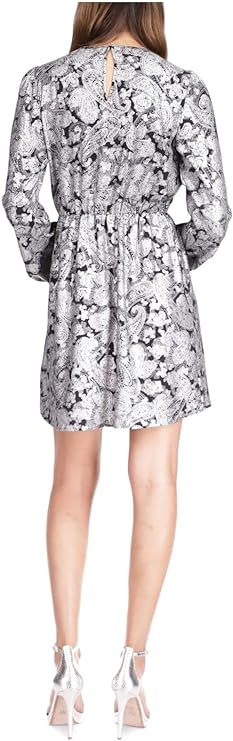 Michael Kors Foil Paisley Long Sleeve Flounce Dress Bone SM